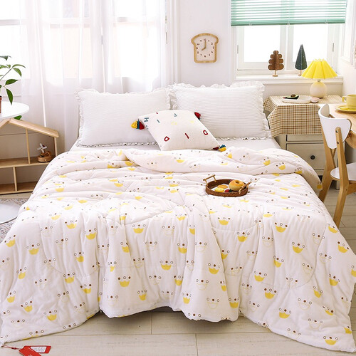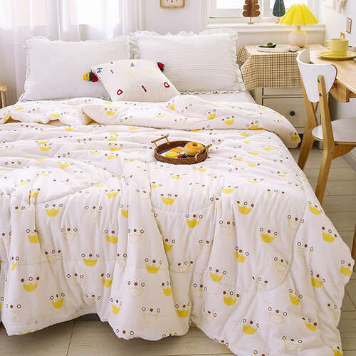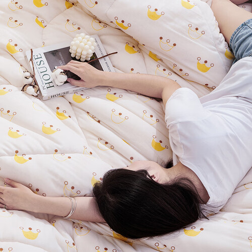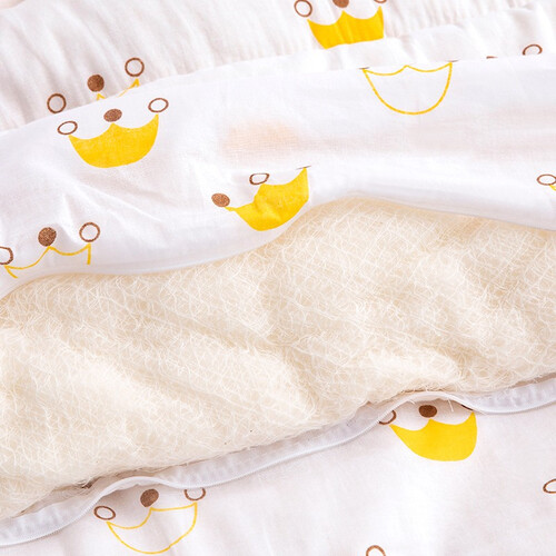 选用了新疆长绒棉填充,一级棉胎,色泽自然气味清香,质地蓬松保暖。背面采用了棉质纱布,触感细腻舒适,吸汗又透气。