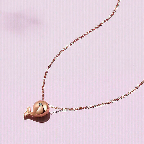 海豚造型的吊坠,打破传统的浇铸和掏空技法,工艺前沿。采用4D硬18K工艺,硬度高,立体感强。