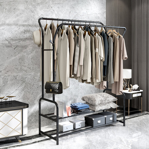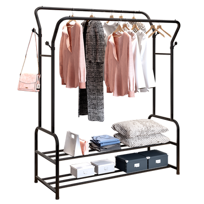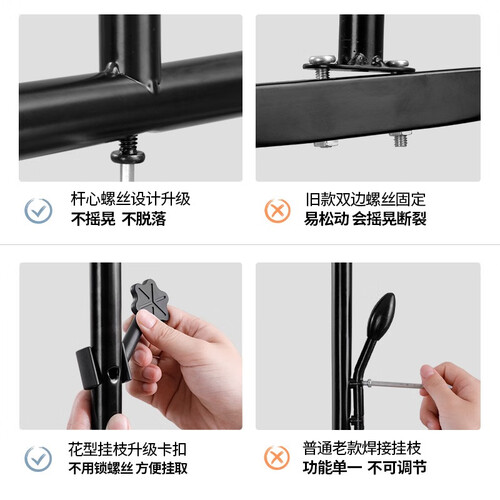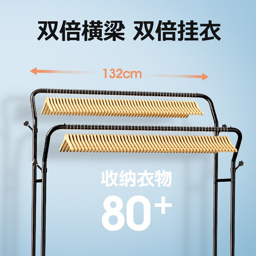 双杆错位的设计,高低晾挂衣物,双倍挂衣,更能节省空间。衣架结实耐用,承重不易弯曲,防锈防滑,品质保证,可挂大件衣服。