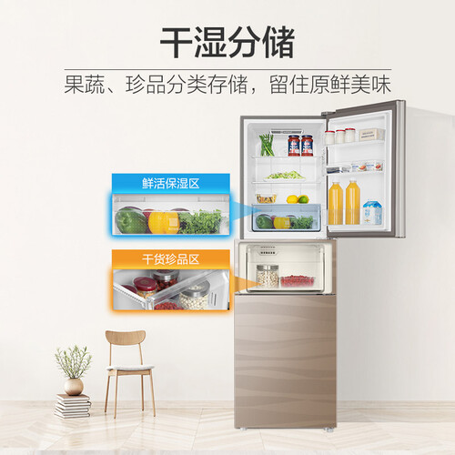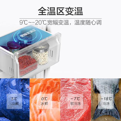 内置LED显示屏,不仅一目了然,而且简单易操作。存储空间分为干湿两区,可分别用于存储不同种类的食材。