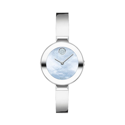 蓝色珍珠贝母表盘搭配银色指针设计,为这款瑞表增添一分灵动气质,搭配矿物水晶镜面,抗刮耐磨,清晰易读,美观且实用。