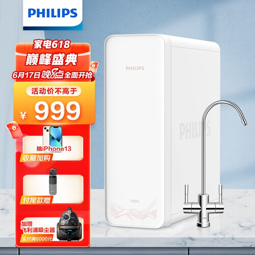 700G大通量,5秒迅速接满一杯水,轻松应对家庭用水高峰。进口RO反渗透膜片,3年长效净化,换芯更少成本更低。