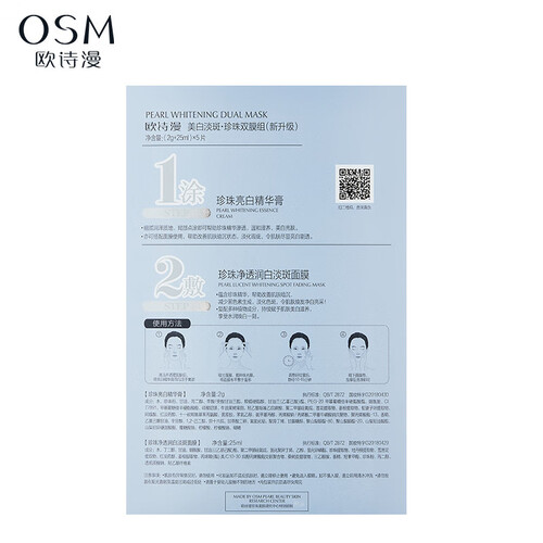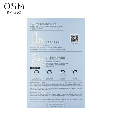 欧诗漫OSM珍珠美白面膜包装高贵典雅,很符合年轻女性气质。面膜精华能有效的淡化黑色素,击退色斑,补水提亮肤色。