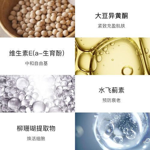 含有大豆异黄酮、维E、水飞蓟素等,可以深层滋养眼周肌肤,让肌肤丰润充盈;质地温和不刺激,敏感肌也可安心使用。