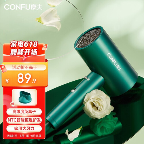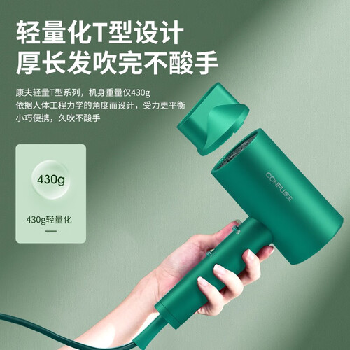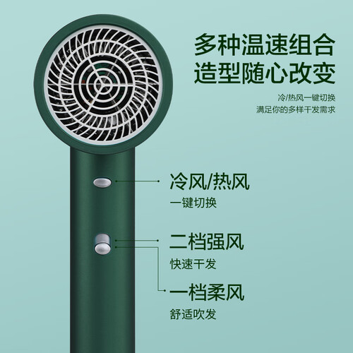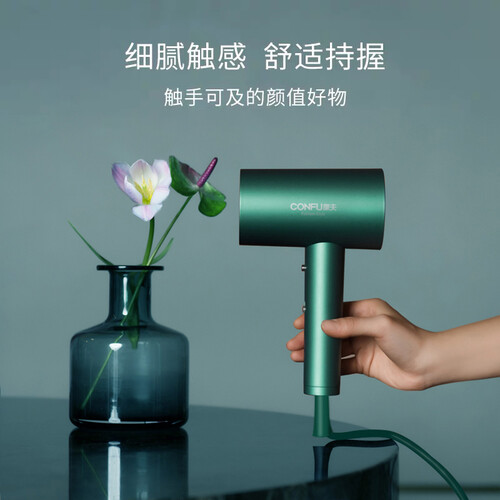 搭载1800W专业级长寿命强劲电机,产生强大离心力,速干不需高温。释放2000万高浓度负离子,从发丝到发根,滋养呵护。