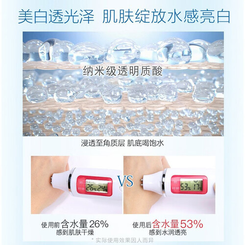 高纯度传明酸协同维生素C,焕肤效果事半功倍,点亮肌肤高光时刻。纳米级透明质酸,为肌肤注入更多保湿能量。