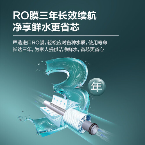 四重滤芯设计,去除水中重金属、有害细菌和水垢,为家人提供鲜活水。进口RO膜技术,应对不同水质并且损耗低。