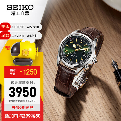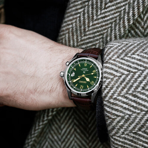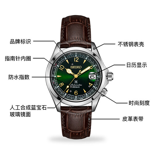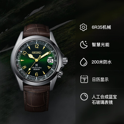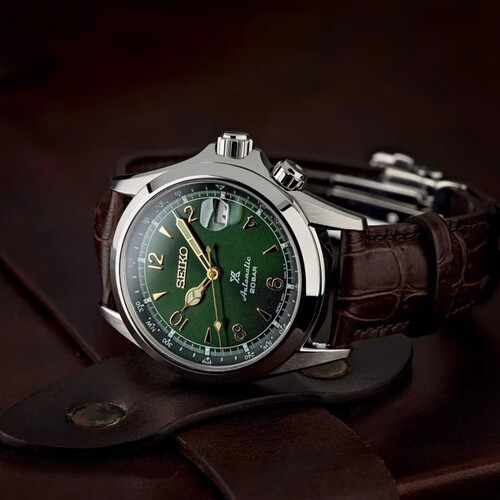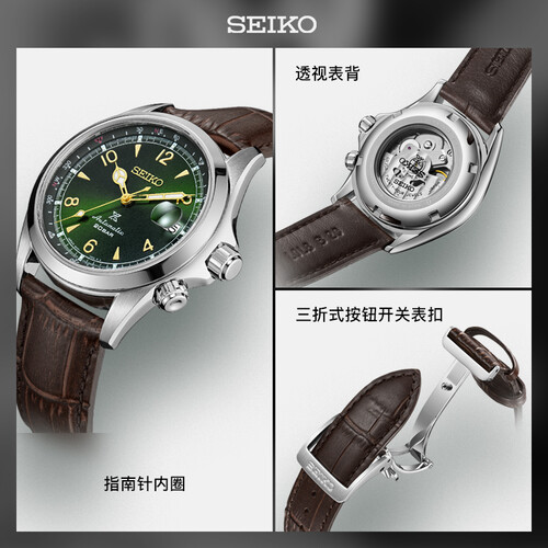 精工 复古绿皮带机械男表