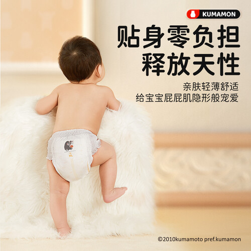 拥有篷软热风面层,触感绵柔细腻,呵护宝宝的娇嫩肌肤。使用3D太空芯体,满足整晚尿量需求,不打扰宝宝的好梦。