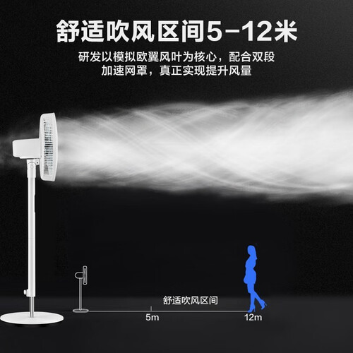 升级的七扇叶设计,切割空气更均匀,出风细腻更柔和。采用双段聚风加速网罩设计,有效提高风速,纳凉更快速。