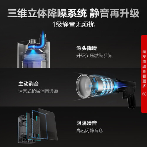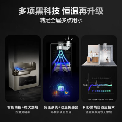 升级负压燃烧系统,上置无极变频风机,成就更低的噪音,沐浴更安静。搭配微火燃烧技术,可实现精控火力大小,无需手调。
