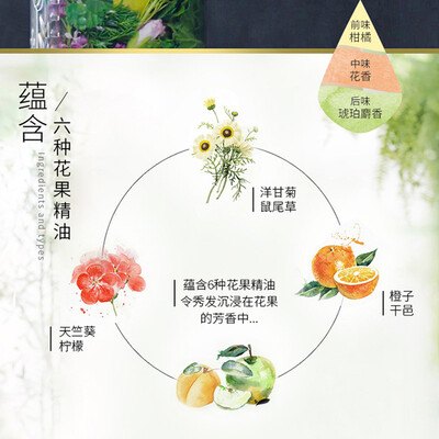 甄选植精选养发精粹,含90%的天然植物成分,深入滋养发根,高度保湿,清爽止痒。蕴含六种花果精油,香味清新,持久留香。