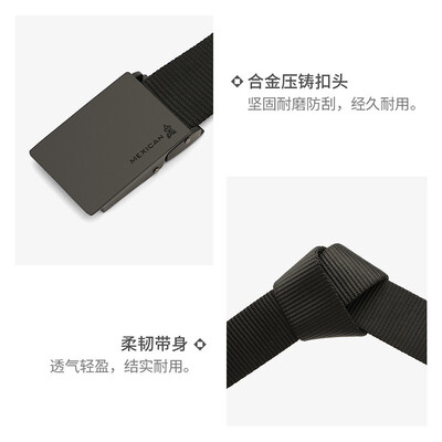 电镀合金扣头光泽度上乘,手感舒适时尚感强。高性能加捻尼龙带身,柔软紧致不易磨损。穗型锁边避免松散,紧密咬齿不滑扣。