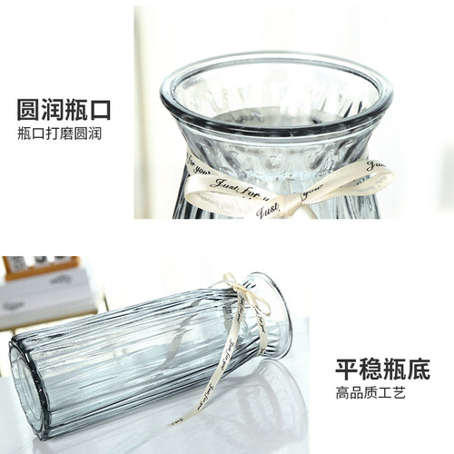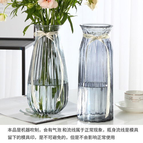 这款花瓶采用上下宽中间窄的的设计,就像是提高腰线一样,视觉上拉长了整体比例,看起来高贵优雅。机器吹制而成,形状更规范。