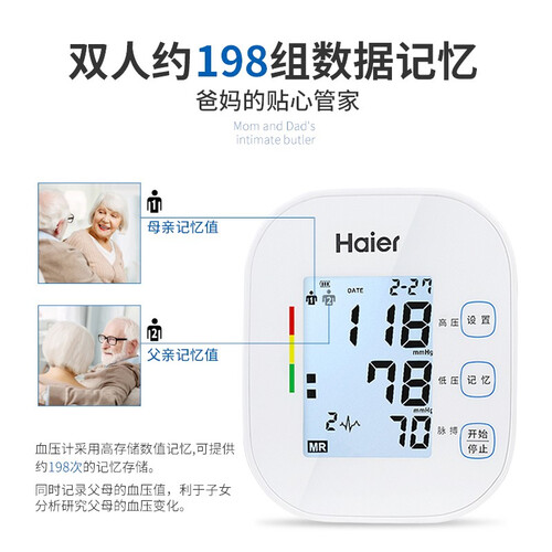 高清蓝光大屏,大字体显示,老年人也能清晰直观阅读。一键操作,智能测压,可储存双人198组数据,是送爸妈的理想好物。