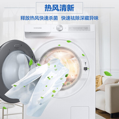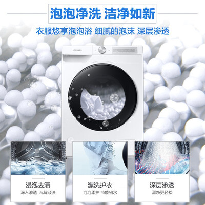 采用经典白色简约设计,灵活多种家居风格,百搭家居。内置泡泡渍洗,绵密泡沫轻松瓦解污渍,实现洁净衣物无残留。