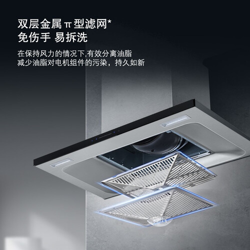 智能自清洁功能,可以溶解淤积的油污,延长油烟机的使用寿命。895mm宽幕拢烟,能够覆盖更大的面积,避免油烟扩散。