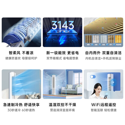 内置防霉过滤网,有效隔离微尘杂质,家人呼吸更健康。搭载智能变频科技,迅速制冷暖,舒适无需久等。