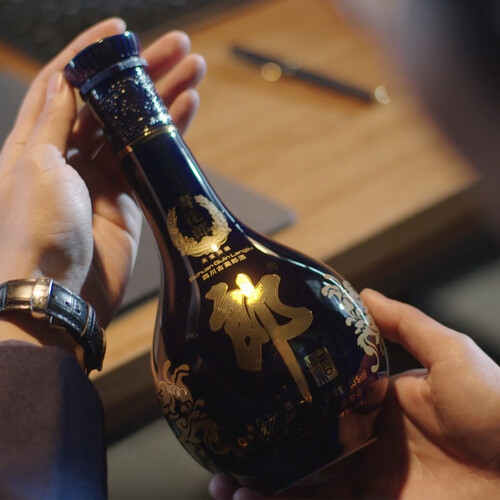 瓶型华丽圆润。甄选优质纯粮,古法制曲,存于陶坛,洞藏陈酿而成。酱香白酒,甘醇柔和,温润顺滑,层次丰富,香气细致悠长。