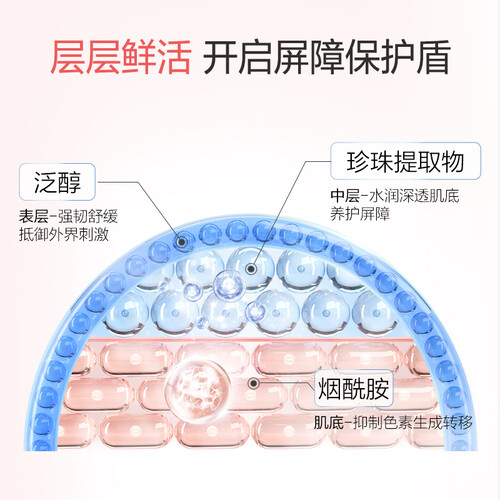 拥有高营养的滋润成分,补充肌肤所需,打造白皙少女肌。升级的珍珠多肽提纯技术,浓度更高,滴滴都是精华。