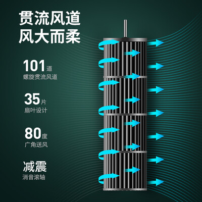 贯流风道的设计,使得气流更加细腻,风感更为柔和,提升使用体验;三种模式结合三挡风速,带来个性化的感受。