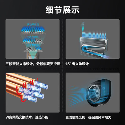 搭载了35℃到65℃的宽域调节温度,每位家人都能自由选择专属温度,享舒适沐浴。三段智能火排的设计,分段燃烧更控温。