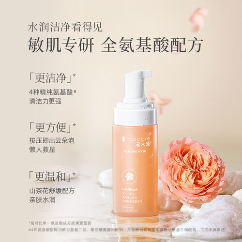 采用有机氨基酸工艺,打造云端质感,助力稳定皮肤屏障。集多种功效于一身,散发自然山茶花香味,贴合呵护敏感肌。