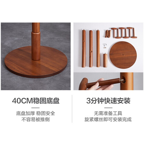 直径达到40CM的底盘,经过加厚处理,更加稳固安全,不易倾倒。独特腰鼓型挂杆,可防止衣物滑脱,避免面料损伤。
