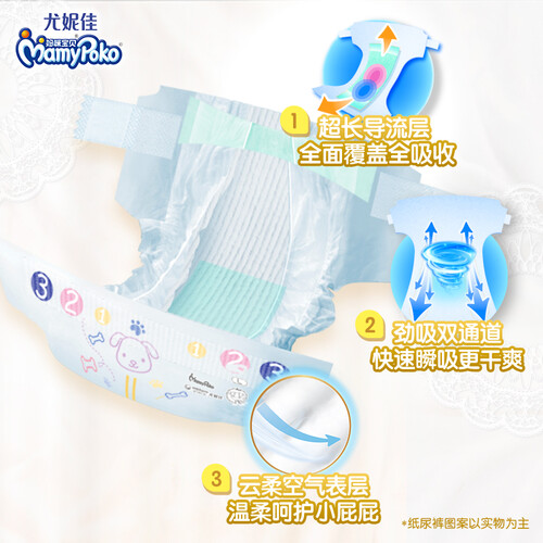 采用超长的导流程,能够紧紧锁住尿液,避免出现渗漏情况。拥有云柔空气表层,触感细腻亲肤,不伤害宝宝稚嫩肌肤。
