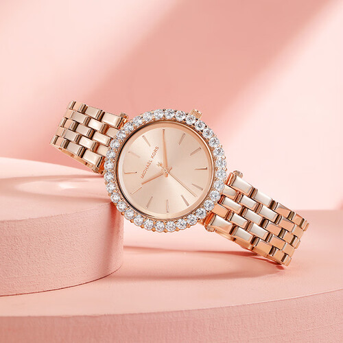 玫瑰金色调,让人一见倾心,格外衬托你肤色的白皙,彰显优雅气质。璀璨夺目的满天星表圈,凸显华丽的质感。