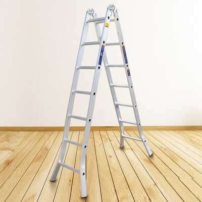 人字形梯框梯脚结构,与地面接触面广,受力均匀,使用稳固安全。带有凹凸防滑纹的铝合金踏步,踩爬防滑更安全。
