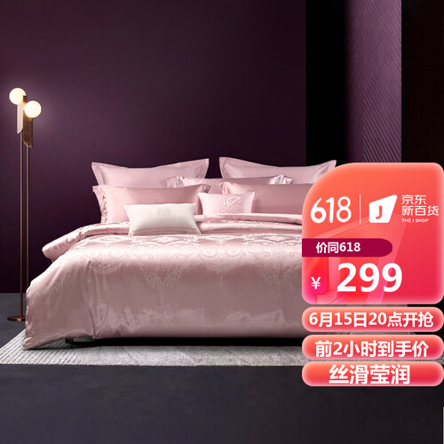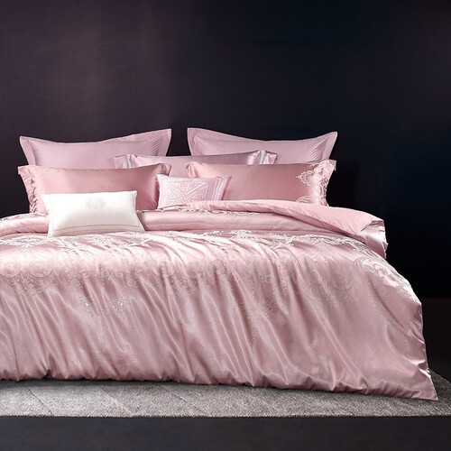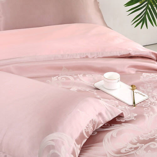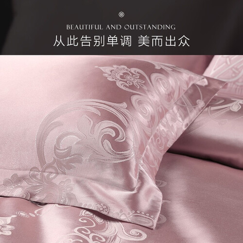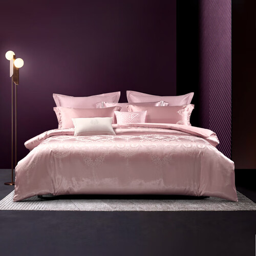 欧式花纹的被面立体雅致,搭配柔粉色调,带来舒适的视觉观感,结合提花工艺,在不同角度下变幻色泽,低调大气更轻奢。