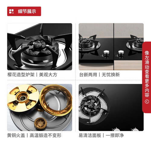 台嵌两用,多场景烹饪随心所欲,并且还是一级能效,热效率高达63%,节能省气,配以熄火保护和童锁保护,双重保护呵护全家。
