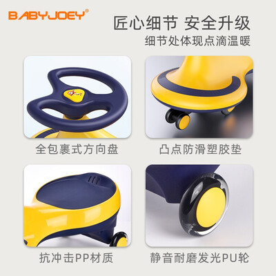 车身贴合人体坐姿,让坐感更舒适,从而愉快的玩耍。模仿赛车型的方向盘设计,可以让宝宝更好的体验开车乐趣,更简单顺手。