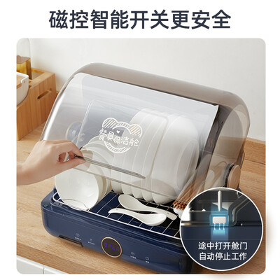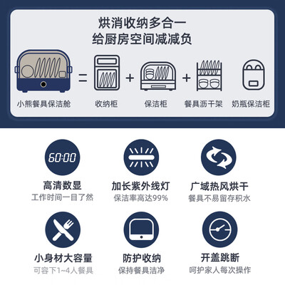 机身精致小巧,摆放使用占空间面积较小,保持厨房敞亮开阔感。具有热风循环烘干功能,保持餐具干净清爽,不易滋生细菌。