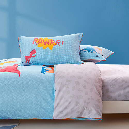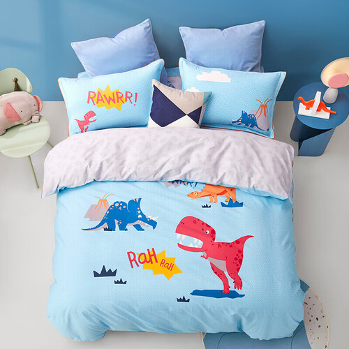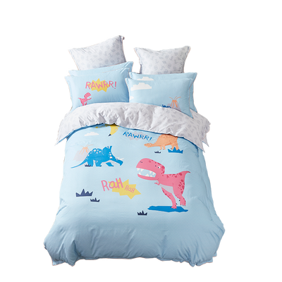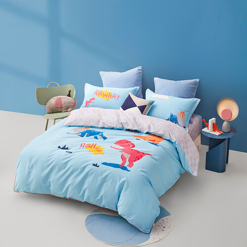 四件套采用恐龙世界图案,梦幻神秘,为生活增添乐趣。加以细致的包边工艺,针脚细密,可提升耐用性。