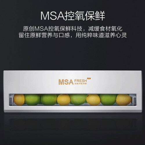 MSA控氧保鲜技术,自动调节氮氧比列,延缓细胞新陈代新,从根源防止营养流失,留住水润鲜活,多维营养储鲜格局,精细分储。
