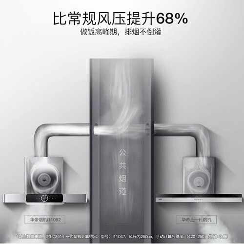 R圆角的设计,有效避免碰头现象;大吸力的功能,能够快速更换厨房空气,防止油烟呛鼻。