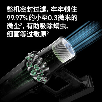 内置专利V10数码马达,提供强劲吸力,洁净灰尘同时扫除家中螨虫。整机密封过滤,能够吸附过敏源与细菌,为家人健康持久护航。