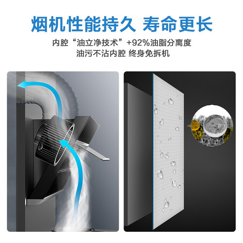 拥有强大风压,排烟迅速,烹饪高峰期也能轻松使用。采用宽屏挡烟板,有效拢烟减少残留,厨房空气更加清新。