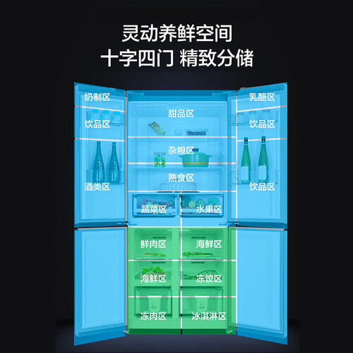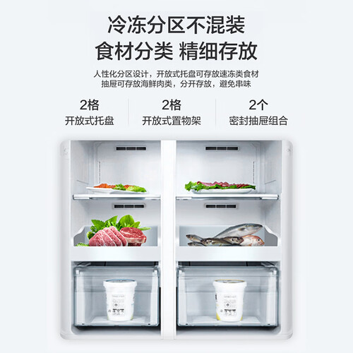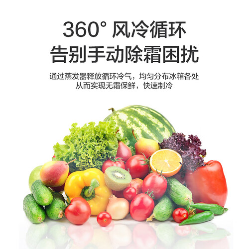 360°风冷循环技术,全方位均匀制冷,有效避免霜冻的情况。灵动养鲜空间,分类存储食材,避免出现串味的情况。