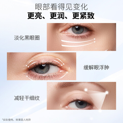 使用后可以淡化黑眼圈,减少干纹,让眼肌柔嫩白皙,告别粗糙。还可紧致眼周肌,变得顺滑细腻,减少浮肿。