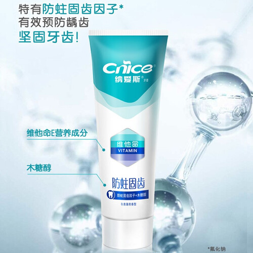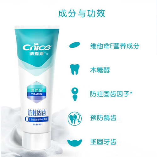 添加防蛀固齿因子和木糖醇,能坚固牙齿预防蛀牙。具有人体所需的维他命E的营养成分,即使是儿童也可放心使用。