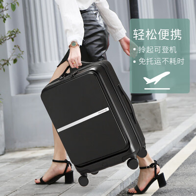 采用前开盖设计,更便于拿取日常用品,多隔层存放不凌乱。箱面设有金属条,既美观又能对箱体起到良好的支撑作用。