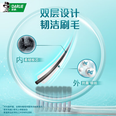 银离子成分搭配备长炭有效持续抗菌,双重防卫成分,使用更安心。更有炭芯银丝刷毛,细致扫刷牙齿死角,守护你的牙齿健康。