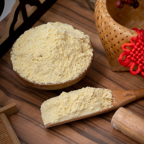 有机生态农场种植的黄豆经过清洗,烘焙和磨粉等多道工序处理,黄豆粉色泽微黄,豆香醇厚,粉质细腻,中式点心点缀提味优选。