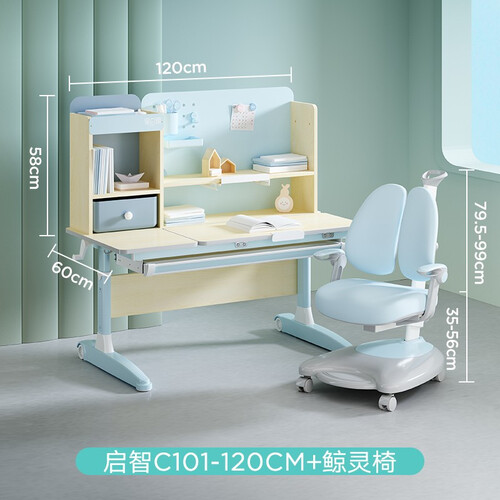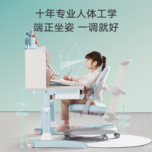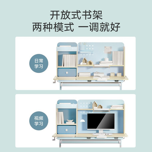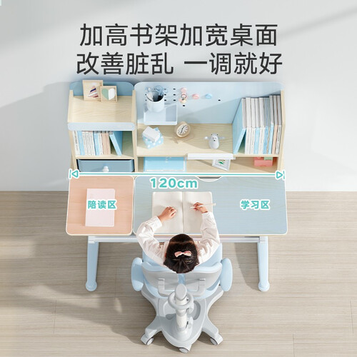 环保实木打造,健康无异味,能增强其承重力,孩子安心学习。桌面分区合理,学习用品皆可存放,灵活收纳。高度可调,陪伴孩子成长。