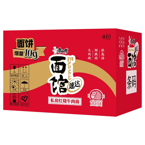 升级后的方便面其面饼含量增加10g,轻松填饱空荡肠胃。经8小时熬制的醇厚牛骨高汤,给你面馆现做的正宗好味。