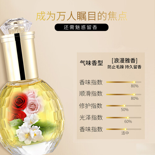 多种自然植物鲜粹提取,含澳洲坚果籽油和棕榈油酸,让秀发增加吸收力和光泽度。带有浪漫优雅香气,持久留香。
