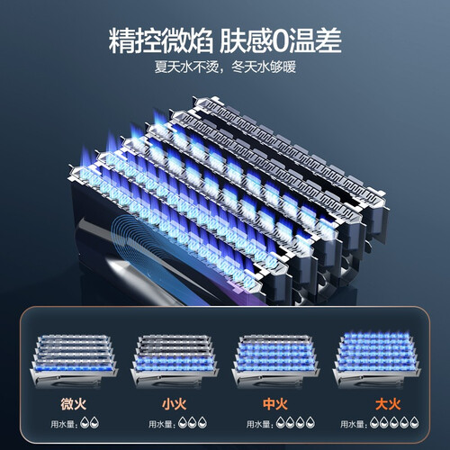 选用水量伺服器调控进水量,燃气比例调节进气量,在多处同时用水的情况下,水温依然可以恒定如一。